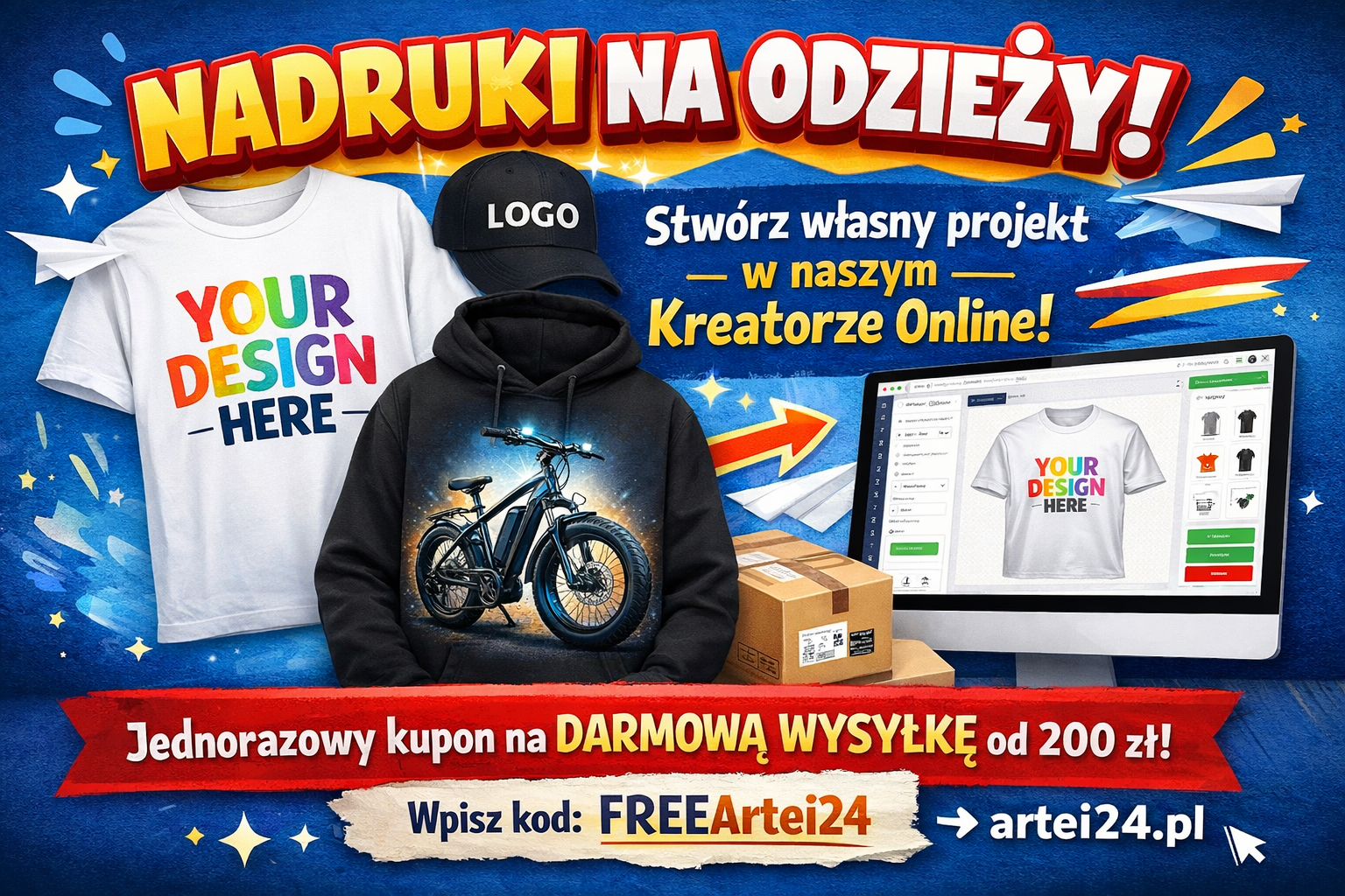Nasza sklep zapewnia intuicyjny kreator, dzięki któremu w łatwy sposób zaprojektujesz koszulki, bluzy i czapki dokładnie tak, jak chcesz.
